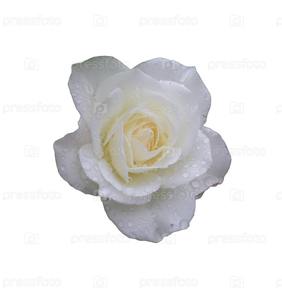 Белая роза с каплями воды на лепестках - изолят на белом фоне