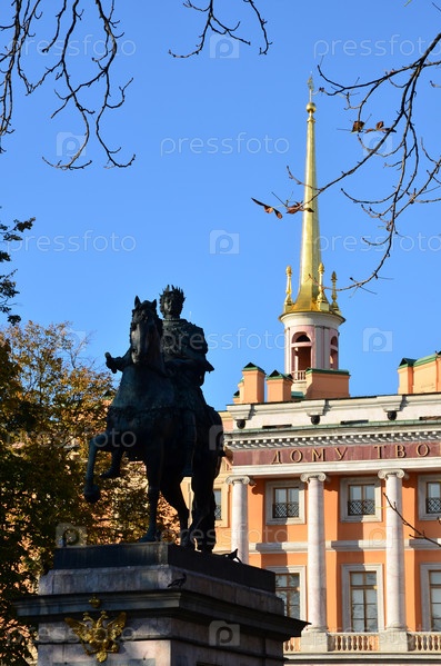 Памятник императору Петру I у инженерного (Михайловского) замка в Санкт-Петербурге осенью