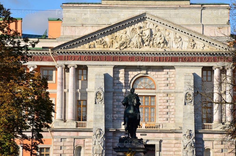 Памятник императору Петру I у инженерного (Михайловского) замка в Санкт-Петербурге осенью