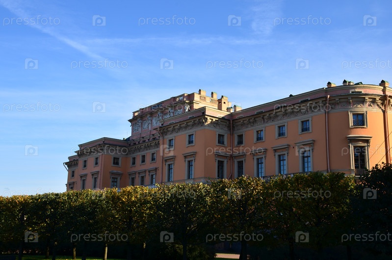 Вид на Михайловский (Инженерный замок) со стороны реки Мойка в осенний солнечный день в Санкт-Петербурге