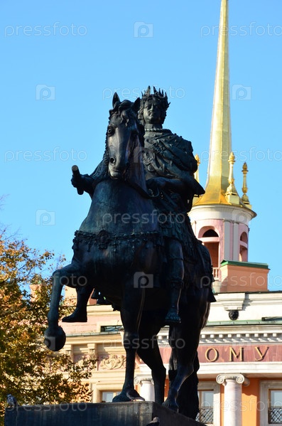 Памятник императору Петру I у инженерного (Михайловского) замка в Санкт-Петербурге осенью