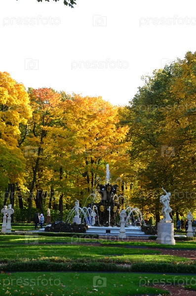 Вид на осенний Летний сад в Санкт-Петербурге: Фонтан Коронный и Парадный партер