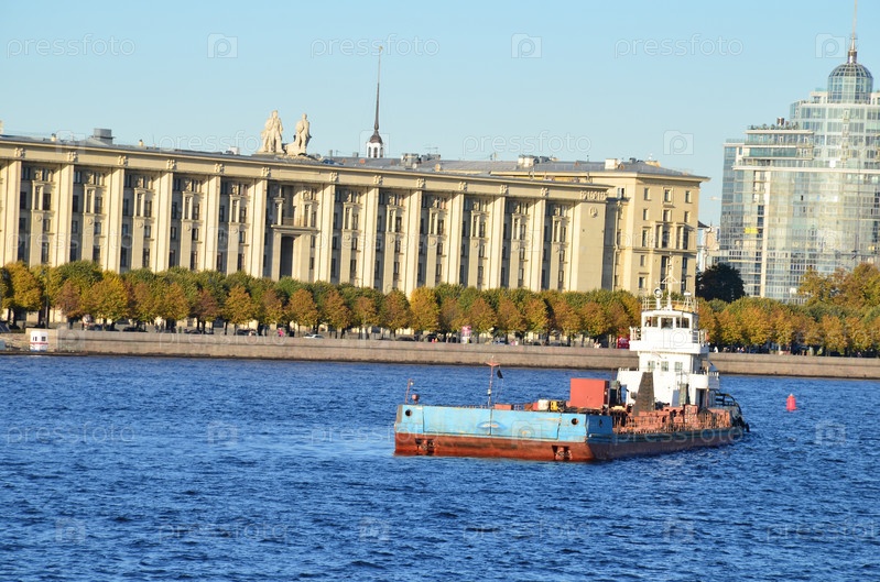 Баржа в акватории Невы в Санкт-Петебруге
