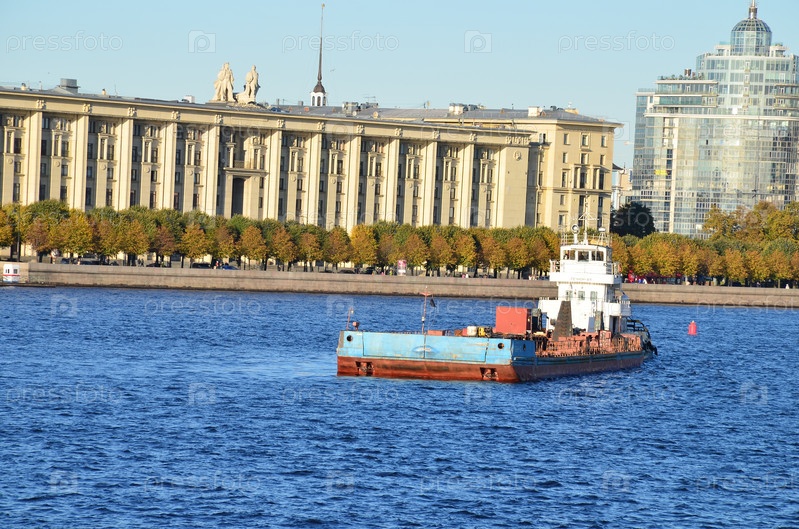 Баржа в акватории Невы в Санкт-Петебруге