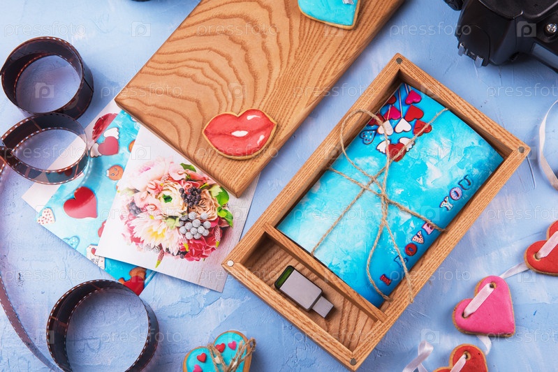 Деревянная фотокоробка с фотографией на День свадьбы. Романтическая любовь и концепция дня свадьбы