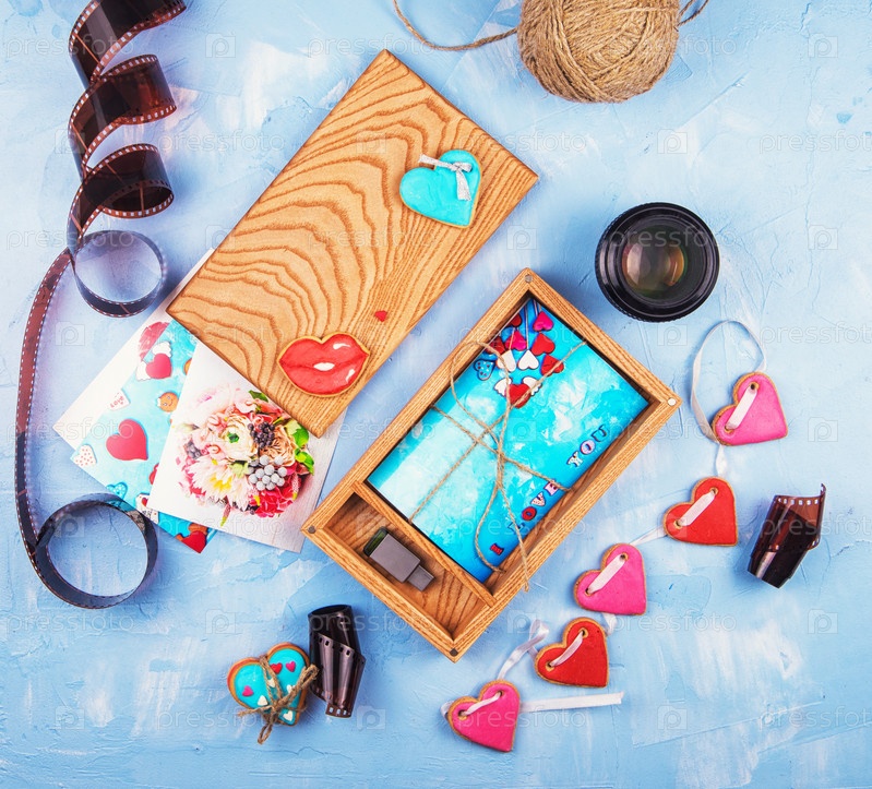 Деревянная фотокоробка с фотографией на День свадьбы. Романтическая любовь и концепция дня свадьбы