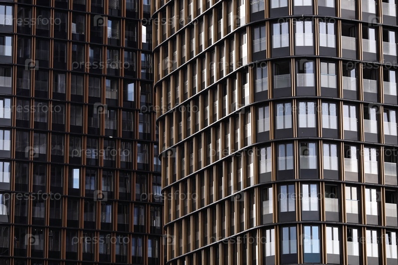 Жилой комплекс Sky View на Дружинниковской улице в Москве. Фасад здания. Современные многоэтажные жилые дома с большими окнами. Новостройки