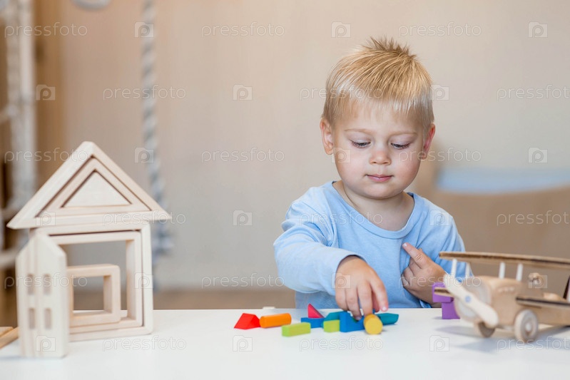 Мальчик 2 лет играет в развивающий конструктор логистика. Детские деревянные игрушки. Монтессори для развития ребенка