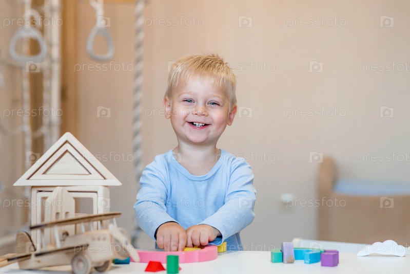 Мальчик 2 лет играет в развивающий конструктор логистика. Детские деревянные игрушки. Монтессори для развития ребенка