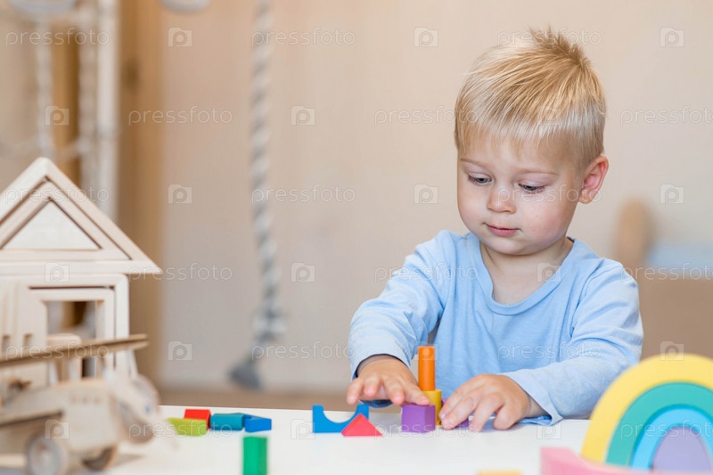 Мальчик 2 лет играет в развивающий конструктор логистика. Детские деревянные игрушки. Монтессори для развития ребенка