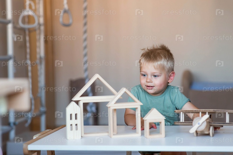 Мальчик 2 лет играет в развивающий конструктор логистика. Детские деревянные игрушки. Монтессори для развития ребенка