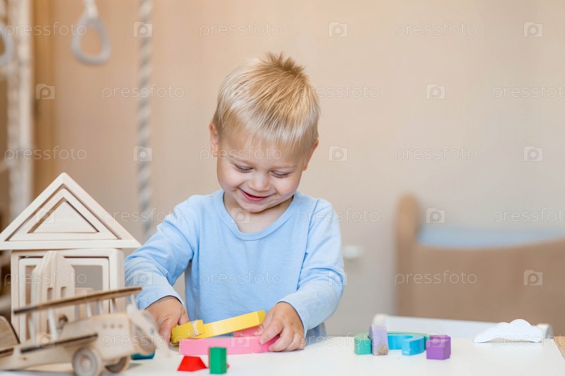 Мальчик 2 лет играет в развивающий конструктор логистика. Детские деревянные игрушки. Монтессори для развития ребенка