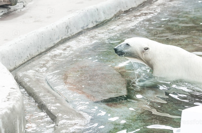 Портрет белого медведя (Ursus maritimus) в неволе в зоопарке