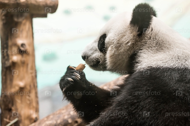 Гигантская панда (Ailuropoda melanoleuca) ест хлеб.Вид произрастает в Китае.Портрет панды