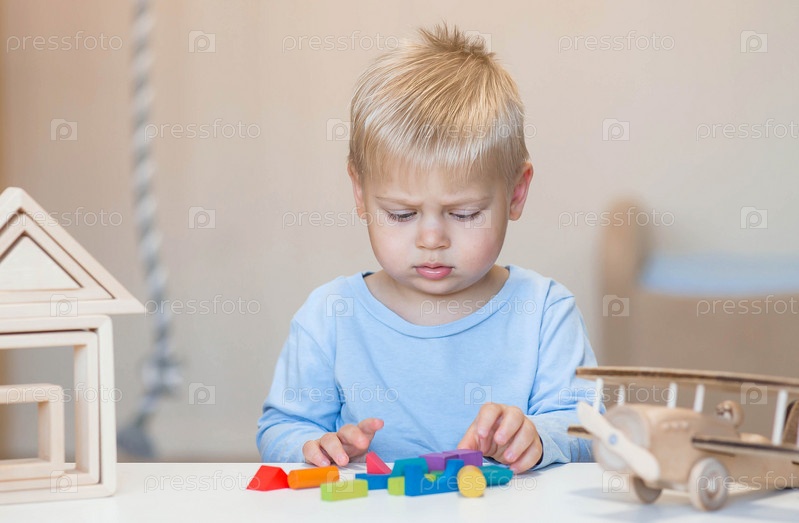Мальчик 2 лет играет в развивающий конструктор логистика. Детские деревянные игрушки. Монтессори для развития ребенка