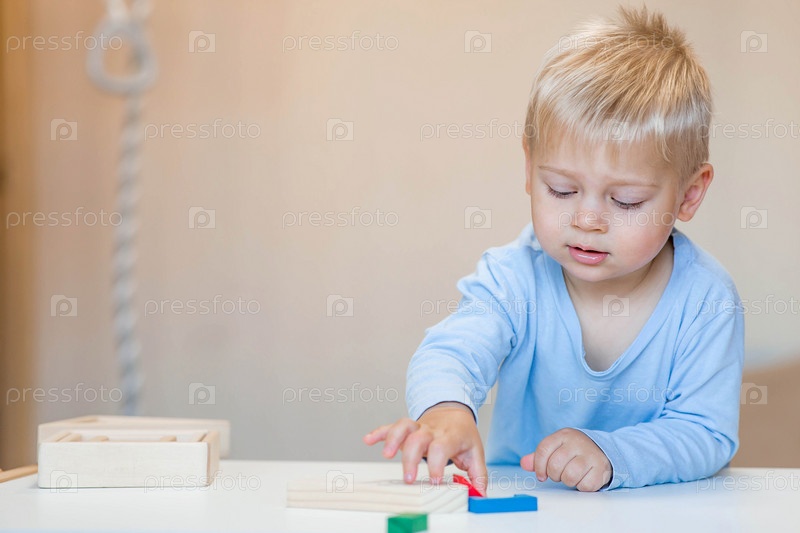 Мальчик 2 лет играет в развивающий конструктор логистика. Детские деревянные игрушки. Монтессори для развития ребенка