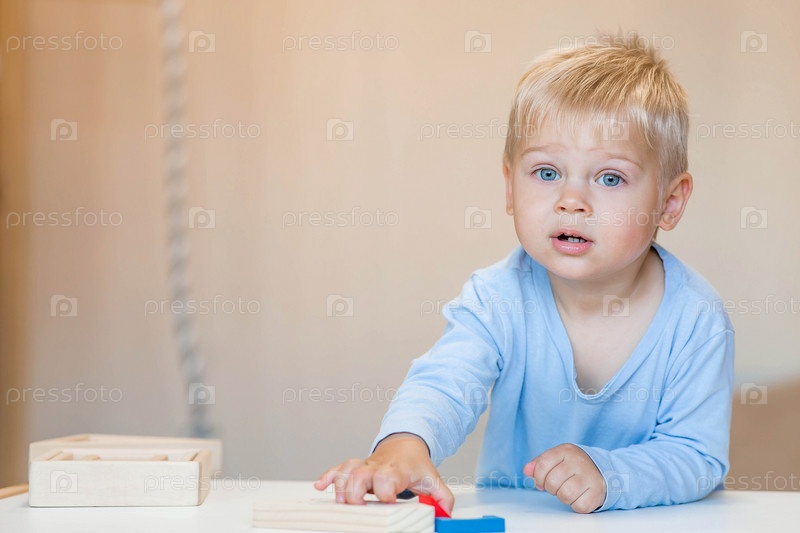 Мальчик 2 лет играет в развивающий конструктор логистика. Детские деревянные игрушки. Монтессори для развития ребенка