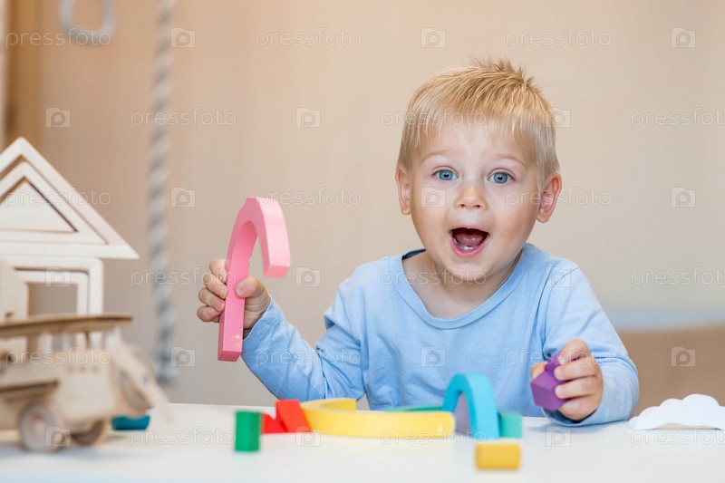 Мальчик 2 лет играет в развивающий конструктор логистика. Детские деревянные игрушки. Монтессори для развития ребенка