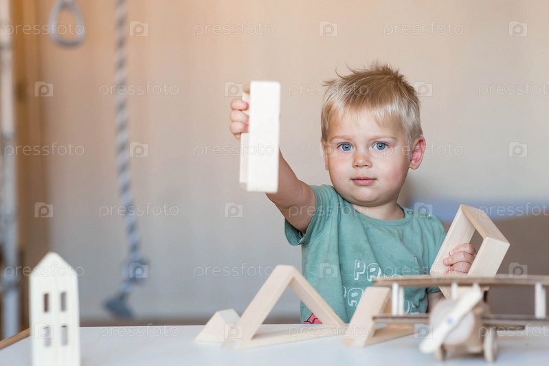 Мальчик 2 лет играет в развивающий конструктор логистика. Детские деревянные игрушки. Монтессори для развития ребенка