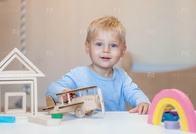 Мальчик 2 лет играет в развивающий конструктор логистика. Детские деревянные игрушки. Монтессори для развития ребенка