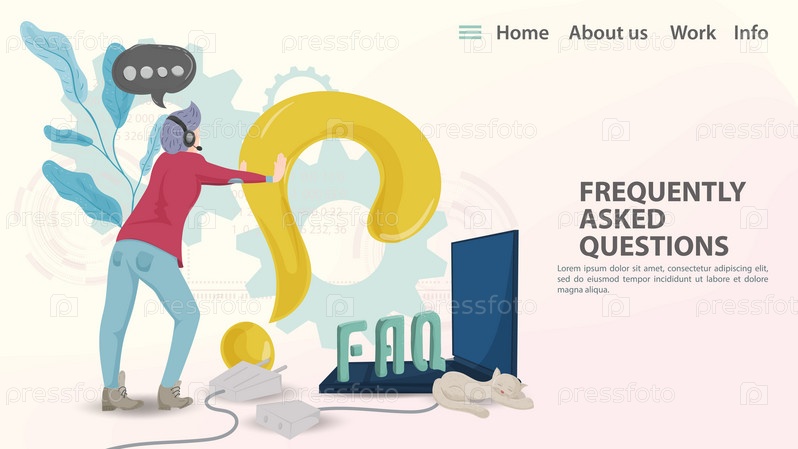 Шаблон целевой страницы с векторной иллюстрацией FAQ для веб-страницы или приложения Парень вставляет вопросительный знак в ноутбук