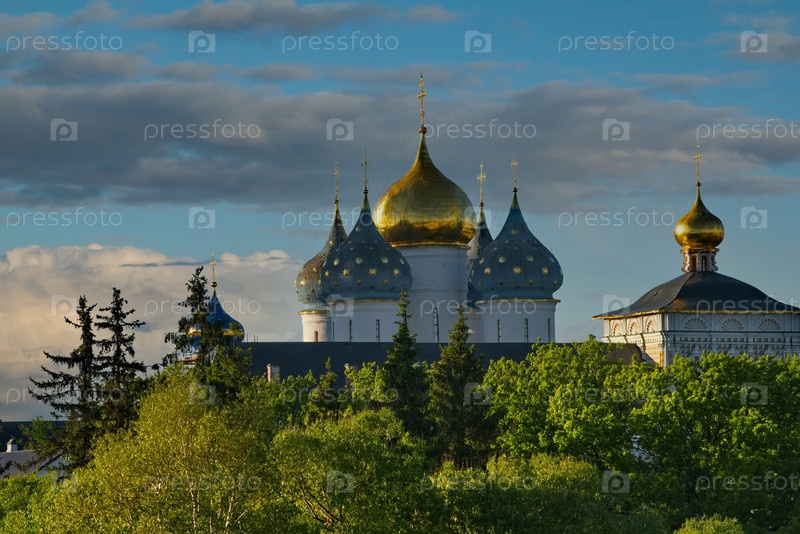 Сергиев Посад. Россия. 07 июня 2022 года. Вид на позолоченные купола православных церквей Троице-Сергиевой лавры. Знаменитый монастырь был основан в 1337 году