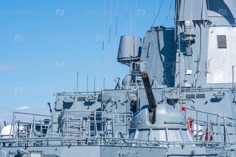 Военно-морской фон, концепция, фрагмент современного военного корабля с орудийной башней