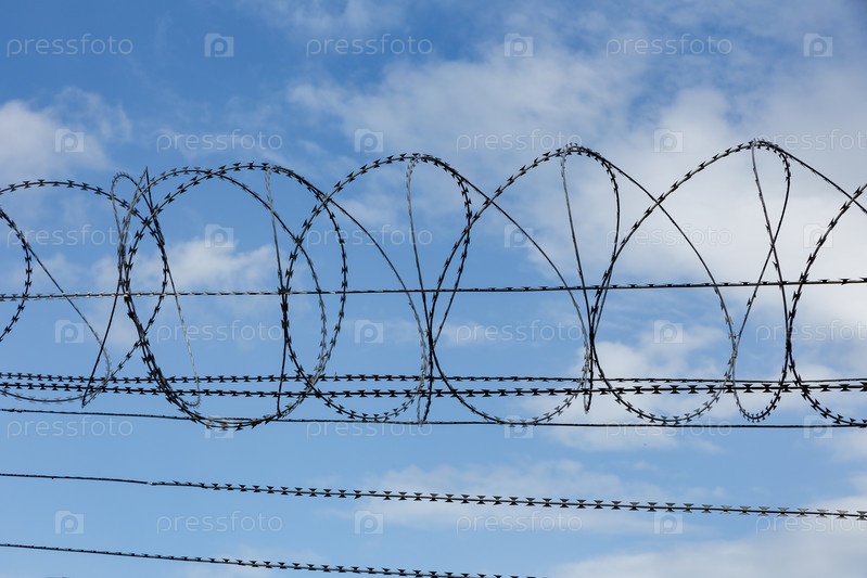Колючая проволока на фоне голубого неба