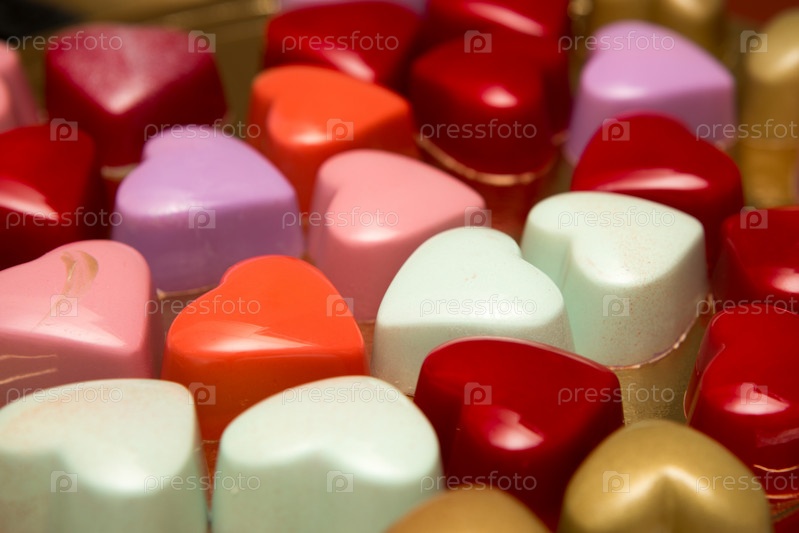 Вкусные шоколадные конфеты, крупный план, разные цвета