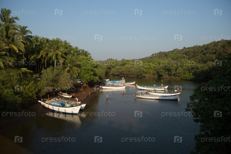 Парк, традиционные рыбацкие лодки на пирсе
