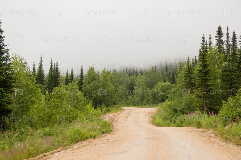 Лесная тропа туманным весенним утром после ночного дождя