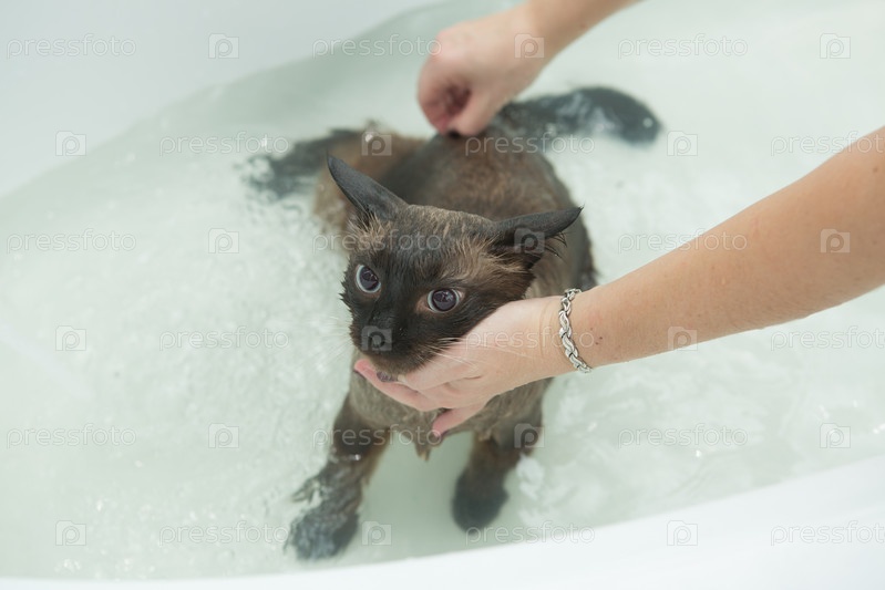 Кошачья ванна. Мокрая кошка.Кошка не любит мыться в ванной