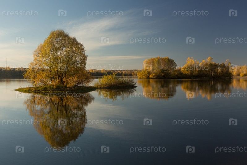 Мягкий осенний пейзаж, отражающийся в спокойной воде