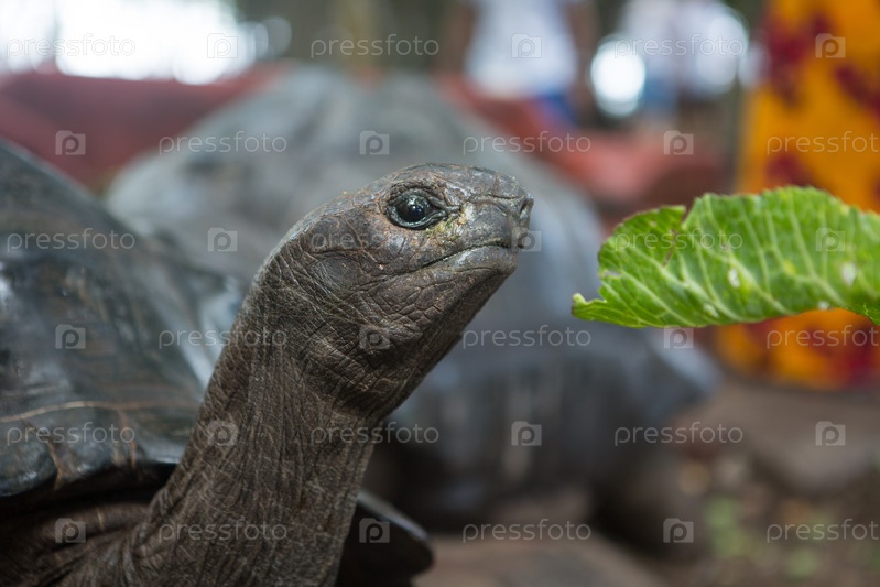Одна гигантская черепаха на Сейшельских островах, Индийский океан, Африка