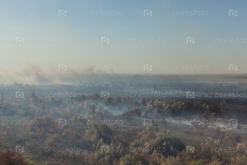 Лесной пожар. Сгоревшие деревья после лесного пожара, загрязнение