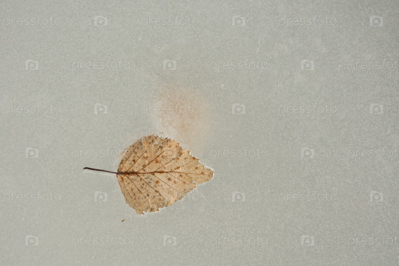 Зимний ледовый план. осенний березовый лист, конечно, замерз в воде