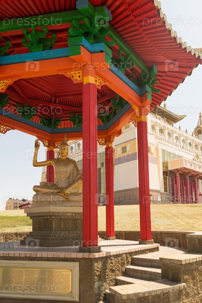 Буддийский храм Золотая обитель Будды Шакьямуни в Элисте, Республика Калмыкия, Россия, скульптуры 17 великих пандитов монастыря Наланда