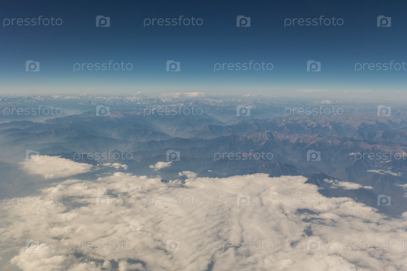 Вид на горный пейзаж из самолета днем