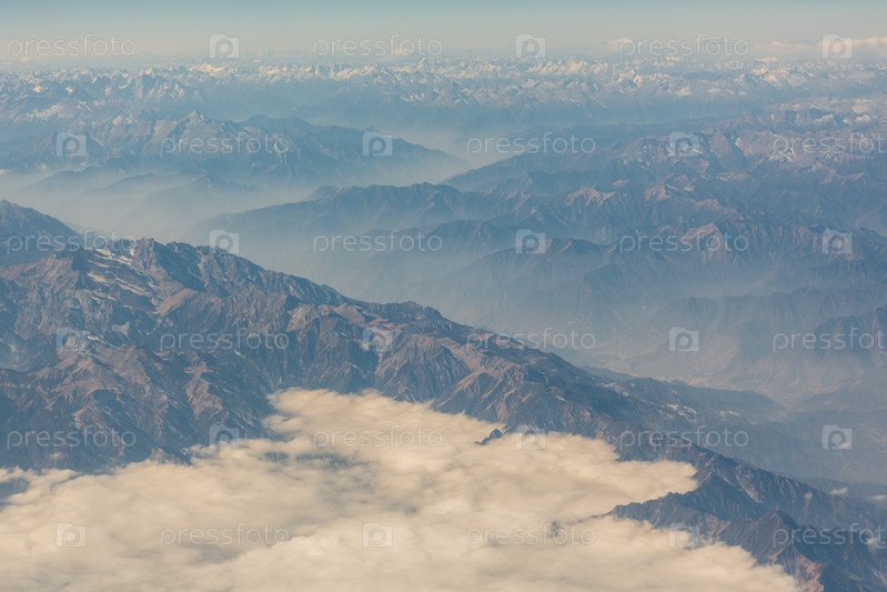 Вид на горный пейзаж из самолета днем
