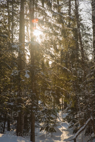 Зимний лес, высокие сугробы в тайге. Россия.Сибирь