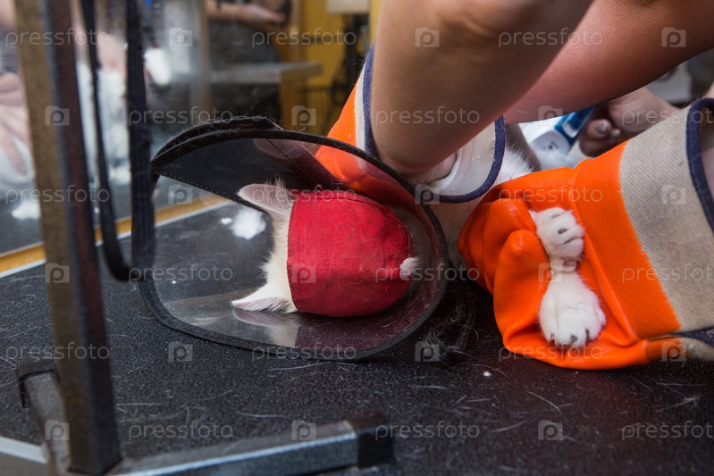 Стрижка кошек в салоне для животных. Женщина использует триммер для стрижки шерсти