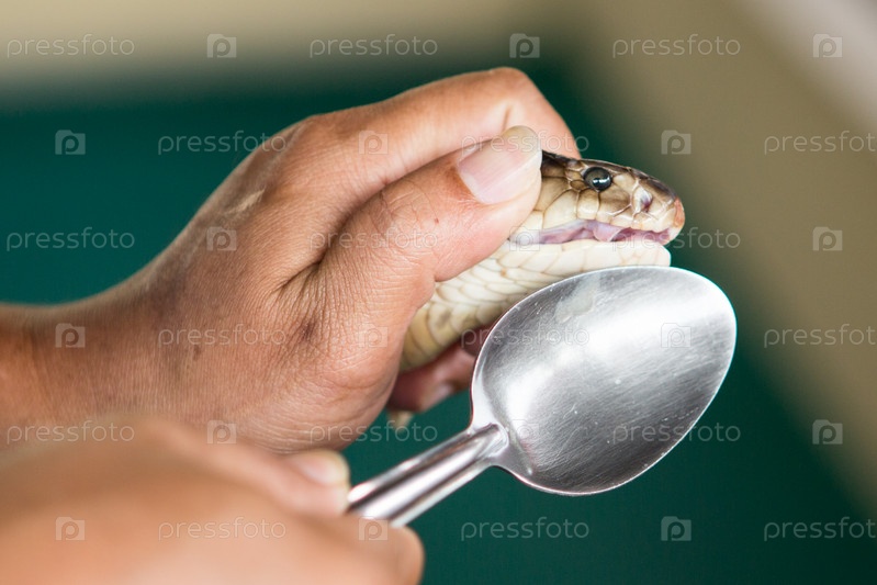 Тренер держит ядовитую кобру