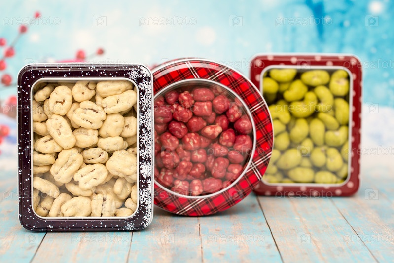 Рождественские сладости, банка, полная ярких разноцветных конфет и леденцов