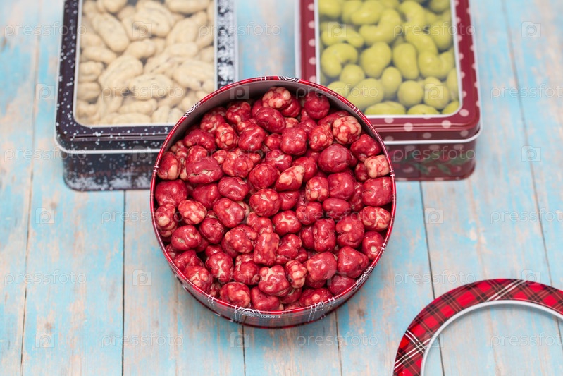 Рождественские сладости, банка, полная ярких разноцветных конфет и леденцов