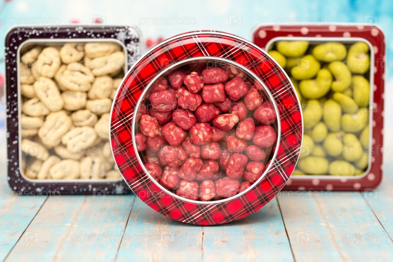 Рождественские сладости, банка, полная ярких разноцветных конфет и леденцов