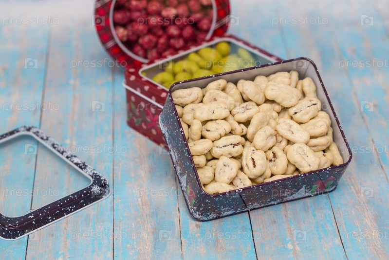 Рождественские сладости, банка, полная ярких разноцветных конфет и леденцов