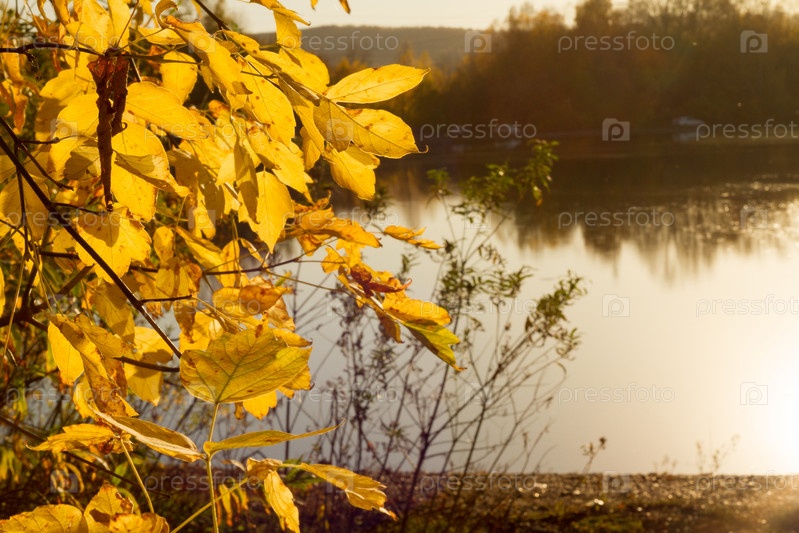 Мягкий осенний пейзаж, отражающийся в спокойной воде