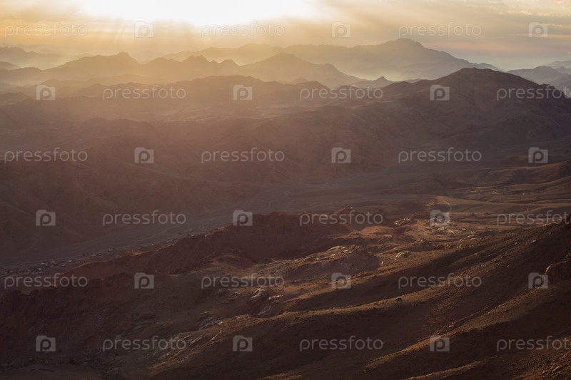 Удивительный восход солнца на горе Синай, гора Моисея с бедуинами, прекрасный вид с горы