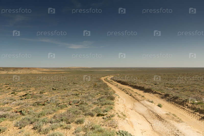 Последствия Аральской катастрофы. Степь и пески на месте бывшего дна Аральского моря. Казахстан