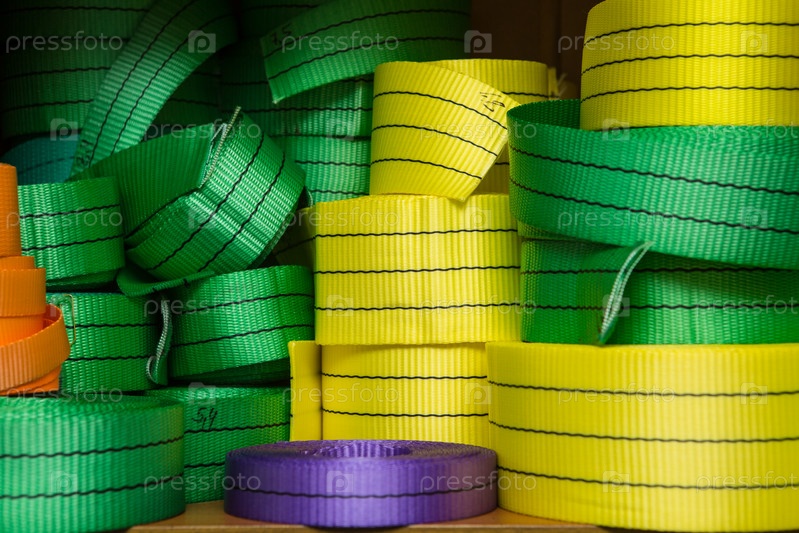 Промышленная швейная машина шьет ленточную стропу. Производство текстильных строп и стяжных ремней
